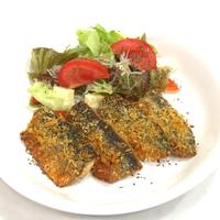 サンマにバジルやパセリをミックスさせた香草パン粉をまぶし、トースターで焼き上げました。香草パン粉に入れた粉チーズが隠し味!オリジナル配合を見つけてみてもいいかもしれませんね。火を使わずに作れるので簡単にお作りできますよ。