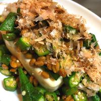 - 2 オクラは、塩を振り板ずりをし沸騰させた鍋のお湯で2分茹で流水で洗います。へタを切り落とし小口切りにします。