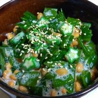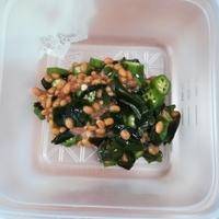 納豆とおくらのネバネバと茎ワカメのコリコリ食感が良いですね😊