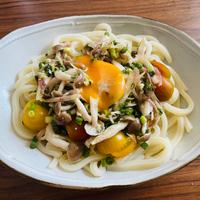 とても美味しかったのでうどんにも載せてみました♪ 風味も食感も良いアクセントで、さっぱりだけどがっつり食べられて大満足です⭐︎ 大葉が無かったので万ネギで。