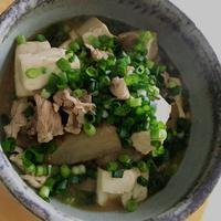 - 2 フライパンに(A)を入れて中火で熱し、煮立ったら豚こま切れ肉を入れ、火が通ったら1を入れて2〜3分煮ます。