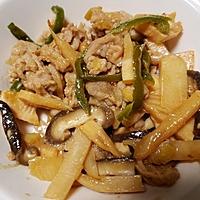 - 5 フライパンにサラダ油を熱して中火で3を焼き、1とタケノコ水煮を加えます。