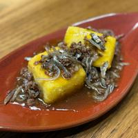 カリッと揚がった豆腐とじゃこの出汁が効いた餡だれが絶妙な一品です。めんつゆベースの味付けで、じゃこの塩気と旨みが効いたお酒にぴったりの逸品に仕上がります。豆腐に片栗粉をまぶすのに少し手間はかかりますが、合挽き肉を加えることで立派なおかずになります。大根おろしやきのこと違い、じゃこと挽き肉の斬新な組み合わせが新鮮で、ヘルシーながらもしっかりとした味わいを楽しめます。