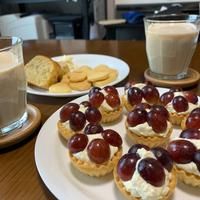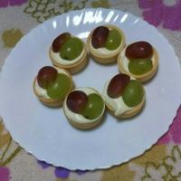 市販のミニタルト台を使って、クリームチーズ生地を絞り、丸ごと食べることができる、ぶどうをトッピングしました。ミニサイズなので、見た目もとてもかわいらしく、食べやすい大きさです。パーティーなどにいかがでしょうか。