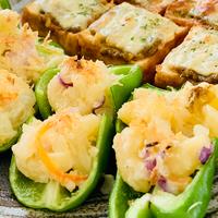 マッシュポテトのピーマン詰め焼きのご紹介です。ピーマンの食感と、バターが香るマッシュポテトがよく合い、クセになるおいしさですよ。マスタードの風味がアクセントになっています。ぜひお試しくださいね。