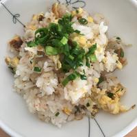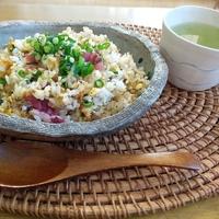 梅味のチャーハン、斬新ですがさっぱりしていて、家族にも好評です。ちりめんじゃこの消費にもいいレシピです。
