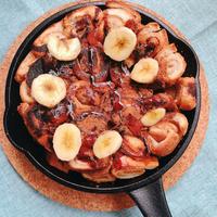 - 6 中火に熱したスキレットにバターを溶かし、4を並べ表裏2分ずつ焼きます。
