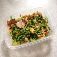 しゃきしゃきとした歯ごたえが残り、おいしい豆苗と、ジューシーなベーコン、ふわっとした炒りたまごを炒め合わせた、簡単に作ることができる一品です。さっと作ることができますので、忙しい朝にもぴったりですよ。