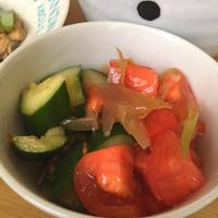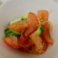手作りしためんつゆがわずかに残ってしまい、トマトとキュウリもたくさんあったので作りました。トマトに甘味があり、お砂糖は入れませんでした。めんつゆのドレッシング応用をこれからチャレンジしたいです。参考になりました。