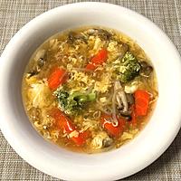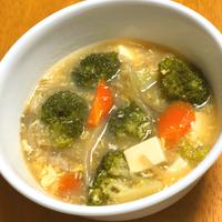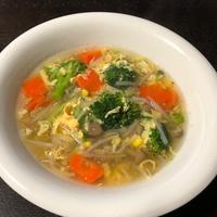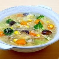 野菜たっぷりで彩り鮮やかなスープは、ブロッコリー、人参、しいたけなどの具材がとろとろに煮込まれた優しい味わい。溶き卵にマヨネーズを加えることでコクが増し、片栗粉でとろみをつけることでまろやかな食感に仕上がります。具沢山で食べ応えもあり、体が温まる一品です。野菜の種類を変えたり、豆腐を加えたりとアレンジも自在。糖質制限中の方も野菜を工夫することで楽しめます。