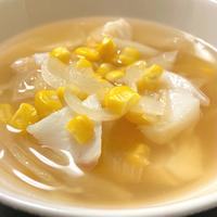 長ネギを玉ねぎに、卵をコーンにして作りました。