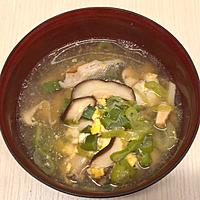 ベジブロスがベースなのでスープの色は濃いめです。タラ、ネギ、椎茸、卵、サンチュで作りました。子供達にも好評で美味しかったです😃✨