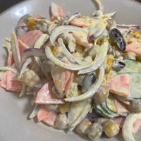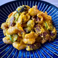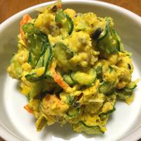 野菜とお豆がたっぷりな、塩分控えめのかぼちゃのクリーミーサラダのご紹介です。かぼちゃのやさしい甘さに生クリームを加え、よりクリーミーに仕上げました。きゅうりとにんじんは塩もみではなく、酢で和えておくことで、シャキッとした食感に仕上がりますよ。色んな食材が入り、食感も楽しく味わえるサラダです。ぜひ、作ってみてくださいね。