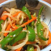 にんじん、ピーマン、豆もやしの和え物レシピのご紹介です。電子レンジを使用するのでフライパン無しで簡単に出来ます。時間のない時やあと一品が欲しい時にもおすすめです。お酒のおつまみにも合いますよ。是非お試しください。