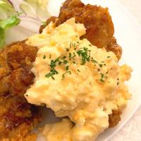カリッと揚がった衣とジューシーな鶏肉の食感が絶妙なチキン南蛮です。一口サイズなので食べやすく、甘酢あんもしっかり絡みます。ヨーグルト入りのタルタルソースはさっぱりとした味わいで、甘酢あんとの相性抜群。玉ねぎやピクルス、らっきょうなどお好みの具材でアレンジも楽しめます。甘酢あんは電子レンジで手軽に作れ、家族みんなに大好評の一品です。