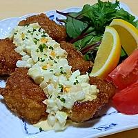 チキン南蛮大好きでよく作ります❗今回はモモ肉で作りました~👍️あんには片栗粉は入れずに酢と砂糖、醤油でフライパンで2分ほど絡めてからタルタルを~キュウリ入りのタルタルは初めてでしたが、さっぱり美味しくいただきました~👍️