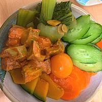 - 4 器にごはん、汁気を切った3の順に盛り付けます。卵黄をのせて完成です。