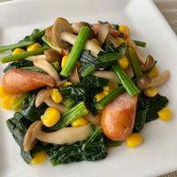 バターとしょうゆの香ばしい香りが食欲をそそる、ほうれん草としめじのソテーはいかがでしょうか。ほうれん草とコーンの彩りが鮮やかで食卓が華やかになります。さっと簡単に作れるので、ぜひお試しくださいね。