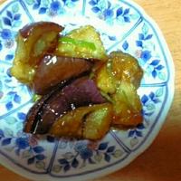 鶏ムネ、タマネギとピーマンを追加して倍量で作りました。酢が強かったので、倍量の時は酢を減らすか、らっきょう酢を使うと良いです。ナスの消費に👍