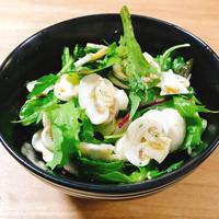 - 3 ボウルにベビーリーフと1、オリーブオイルを入れて混ぜます。