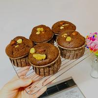 パウンドケーキの型じゃなくてカップケーキ容器で作ってみました。中にカットバナナをいれてナッツをトッピング★