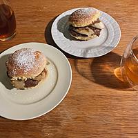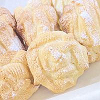 - 5 天板に4を直径6cmに8つ絞り、茶こしで粉糖をふりかけ、170℃のオーブンで15分焼き、粗熱を取ります。