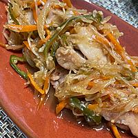 鶏もも肉を揚げずに皮目をこんがりと蒸し焼きにして作る手軽な南蛮漬けです。甘酸っぱい漬けダレがお肉にしっかり染み込み、さっぱりとした味わいに。人参やネギに加え、玉ねぎやピーマンを入れると彩り豊かな一品に仕上がります。黒酢を使うとコクが出て、より本格的な味わいに。夏場はもちろん、年中楽しめる簡単レシピです。