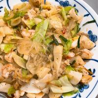エビと春雨のXO醤炒めのご紹介です。プリプリのエビと、ツルツルの春雨にXO醤の旨味が染みてとても美味しいです。ピリ辛がお好きな方はラー油や豆板醤などを加えてアレンジしてみてください。ご飯にも、お酒のお供にも最適です。是非お試しください。
