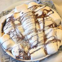 あとからマシュマロをのせて、200度のオーブンで2、3分焼いてからチョコソースと粉砂糖をかけてみました!ふんわりめちゃ甘で美味しかったです!スキレットではなく浅めのグラタン皿で焼きました!