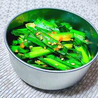 辛くて病みつきになる美味しさがクセになる一品です。シンプルな材料で簡単に作れるニラの漬物は、ご飯のおかずとしてはもちろん、冷奴のトッピングや麺類の薬味としても大活躍。食べ方のアレンジも豊富で、卵黄をのせたり、チゲや焼肉の薬味として使ったりと、アジアンテイストの料理と相性抜群です。豆板醤で辛さを調整できるので、お好みの辛さに仕上げられます。