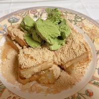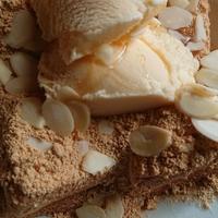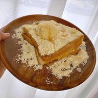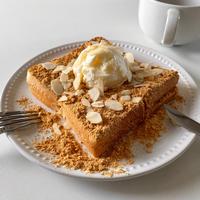 韓国で人気のスイーツがご自宅で簡単に楽しめます。トーストの上に、きな粉とバニラアイス、はちみつ、アーモンドをトッピングして仕上げました。お餅を挟んでいるので、食べ応え十分な新食感スイーツです。ぜひお試しくださいね。