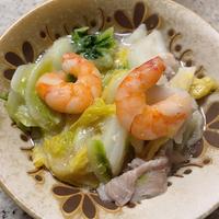 電子レンジで作れる、簡単なボリュームおかずのご紹介です。調味料を入れて混ぜ合わせ、電子レンジで加熱するだけで、とろっとおいしい煮物が出来上がります。たっぷり白菜に、豚肉の旨味とプリプリのエビがとてもよく合います。調味料も少なく、簡単にお作りいただけますよ。