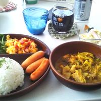朝ごはんに作ってみました。レンジと缶詰で作れるので、簡単です。スープカレーをお手軽に楽しめます。