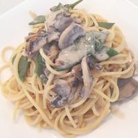 ほうれん草とマッシュルームの味噌クリームスパゲティ レシピ・作り方