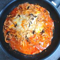 - 4 全体に味がなじんだらピザ用チーズをのせ、蓋をして弱火で5分程加熱します。ピザ用チーズがとろけたら火から下ろします。
