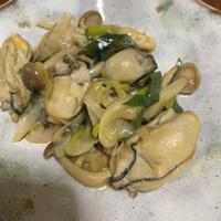 ぷりぷり牡蠣が美味しかった!ソテーなので洋風感を出したくて葱は無し!オリーブオイル、バター、にんにくチューブも入れて!一瞬、蓋をしてふっくら蒸し焼きにしました〜♪