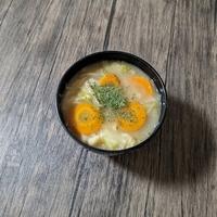 余りがちの餃子の皮を使用した一品です。餃子の皮のもちもちとして、ツルッとした食感がたまらなく癖になります。 野菜も一緒にいっぱい食べられるスープなので、大満足の一品です。 餃子の皮が余ったらぜひ試してみてください。