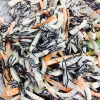 ・マヨネーズを使用しているので、できるだけ早めにお召し上がりください。 ・ひじきは水気をしっかり取らないと味付け後に水分が出てしまうので、水洗い後はしっかりと切ってください。 ・具材を電子レンジで加熱した後は大変熱いので火傷にお気をつけください。