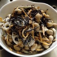 - 3 ボールにひじき、水を切った大豆と2を入れ、(A)を加え均等に混ぜ合わせたら完成です。
