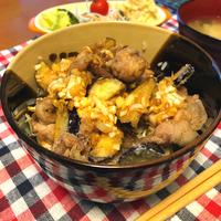 ナスとしめじを加えて油淋鶏丼にしてみました(^^)
