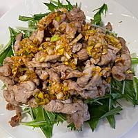 - 4 器に水菜を敷き、2を盛り付け、3をかけて完成です。