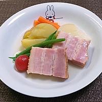 - 5 厚切りハーフベーコンは4等分に切ります。