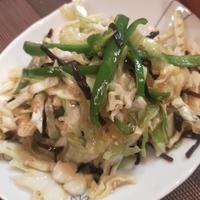 キャベツとピーマンをゴマ油で炒めて塩昆布と和えました。何も味付けしなくてもゴマ油と塩昆布で絶妙な美味しさでした。