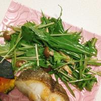水菜は軽くゆでてマリネ風にしました。バルサミコのかわりにお酢で代用しました。粉チーズが合いますね