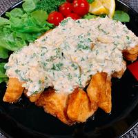 手作りタルタルソースが絶品で、玉ねぎときゅうりの食感が楽しい一品です。サクッとジューシーな衣に包まれた鶏むね肉は、低温でじっくり揚げ焼きすることで驚くほど柔らかく仕上がります。甘酢だれがさっぱりと効いていて、タルタルソースとの相性も抜群。らっきょうやピクルスを加えてアレンジを楽しむこともできます。ヘルシーながらボリュームたっぷりで、家族みんなに大好評の一品です。