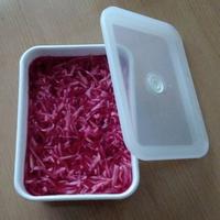 - 4 保存容器に入れて、赤梅酢を注ぎます。
