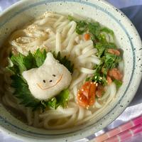 梅干しを混ぜた大根おろしを乗せて、さっぱりいただく温かいうどんのご紹介です。生姜の風味が爽やかなアクセントになり、食欲のないときでもするするとお召し上がりいただけますよ。つゆを冷やしてもおいしくお作りいただけますよ。