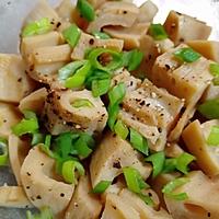 - 1 レンコンは皮をむいて乱切りに、青ねぎは小口切りにします。