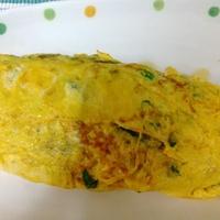 炒めた小松菜を溶き卵に入れて巻き巻きしました。