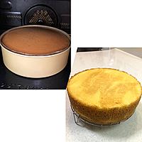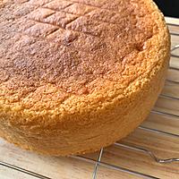 - 1 焼きたてのスポンジケーキをオーブンから取り出し、10cm程度の高さから一度トンと落とします。